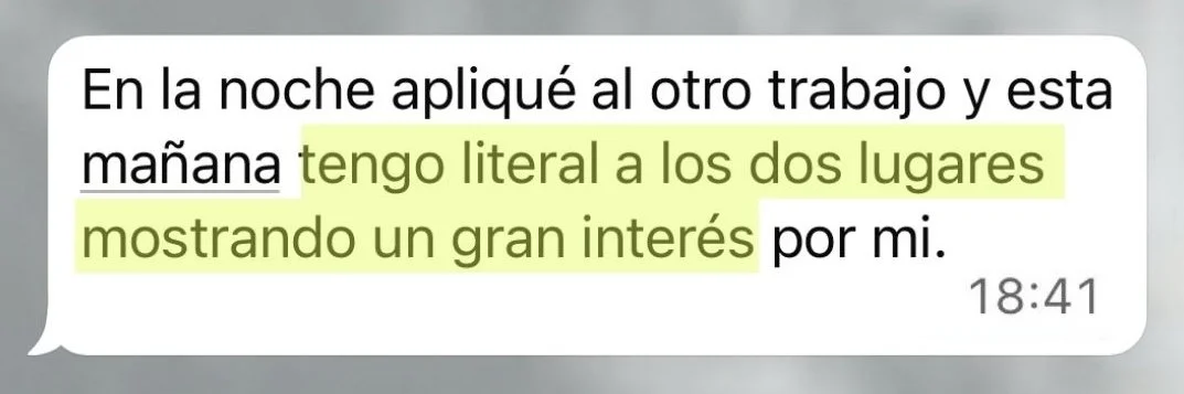 “…tengo literal a los dos lugares mostrando gran interés…”