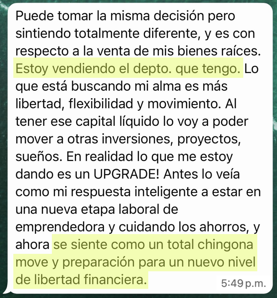 “…Estoy vendiendo el departamento que tengo… se siente como un total chingona move…”