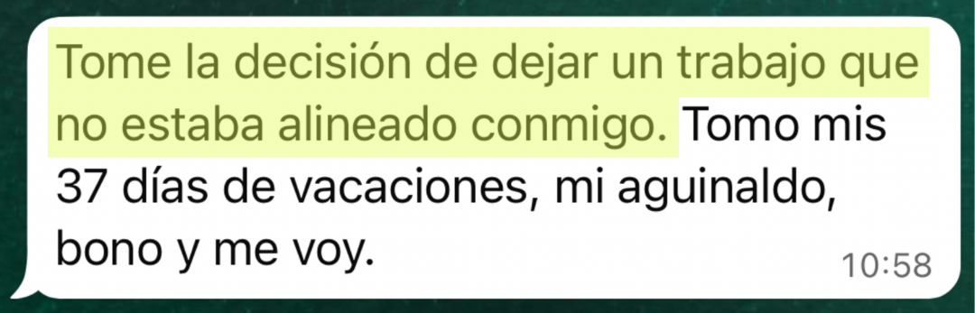 “Tome la decisión de dejar un trabajo que no estaba alineado conmigo…”