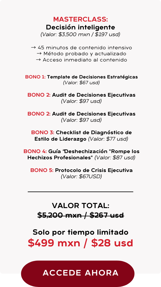 Solo por HOY: GRATIS si obtienes la MASTERCLASS DECISIÓN INTELIGENTE.